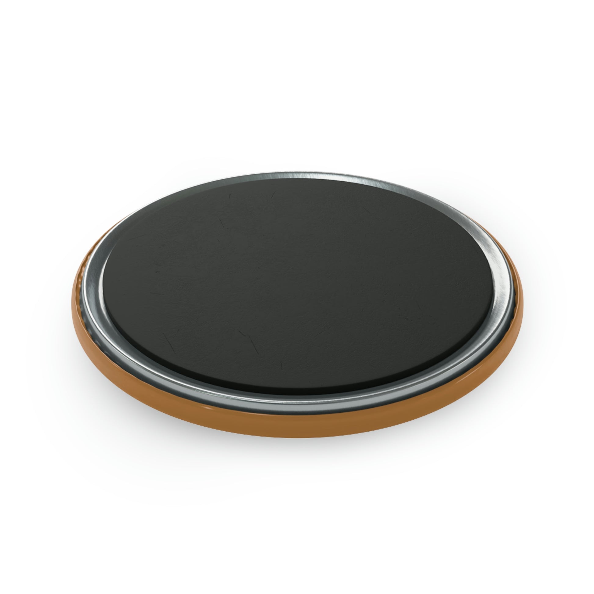 This round magnet features a metal shell front with a magnetic backing. On the front there is a clear mylar/UV cover that protects against fading and scratches. One size (2.25") (5.7cm).