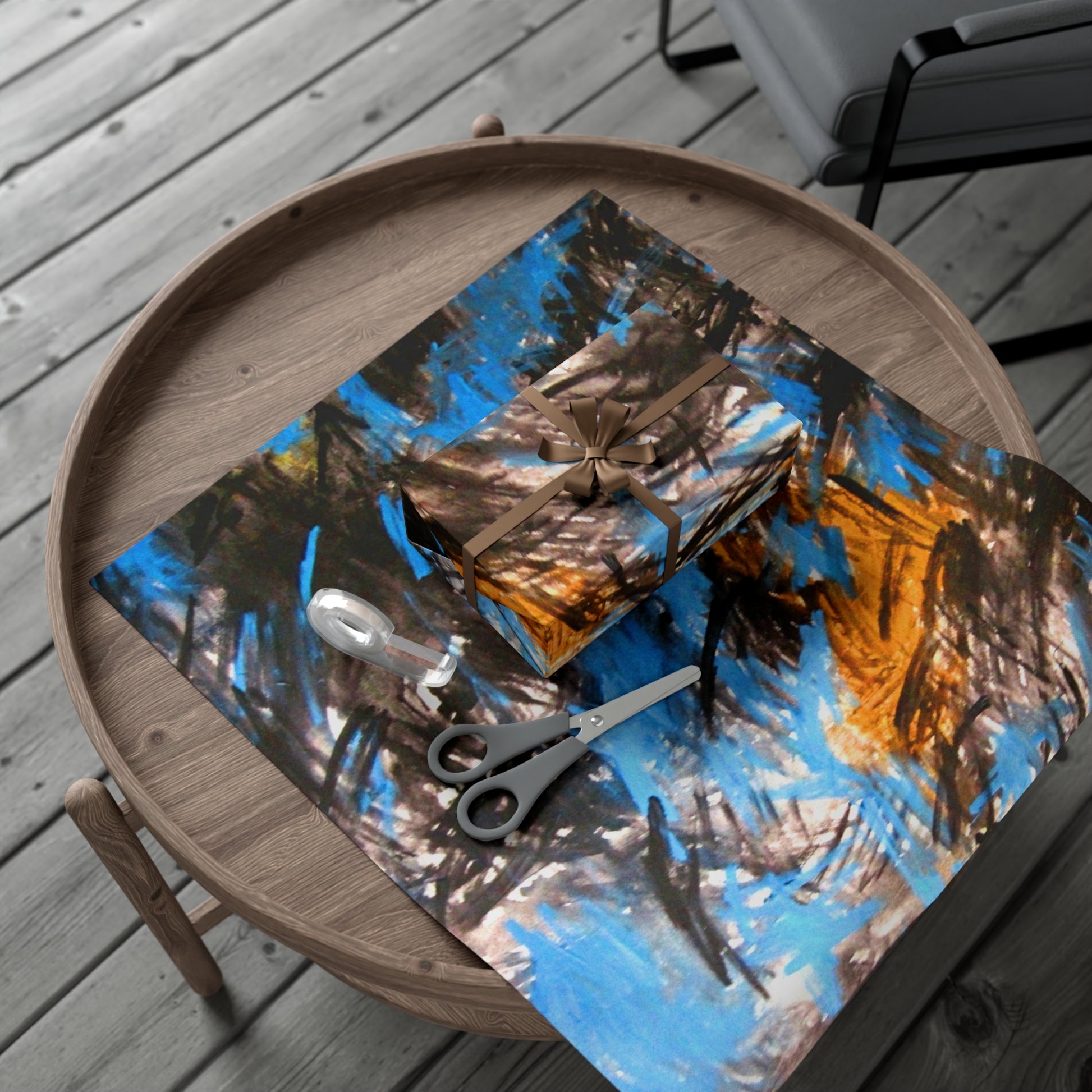 This wrapping paper features a painting by Sharon Dawn entitled Motivation.