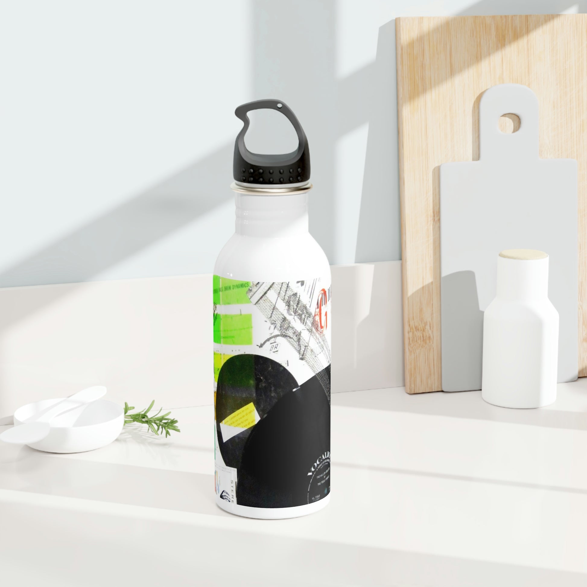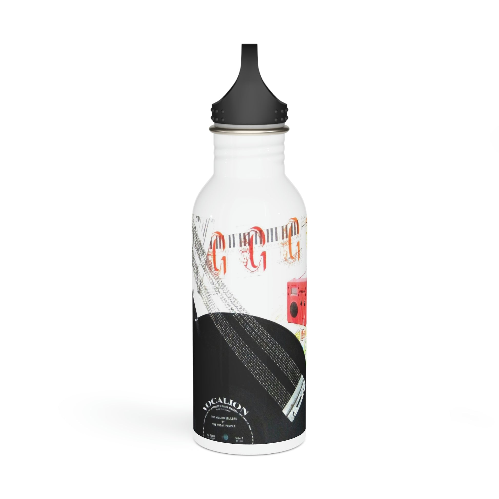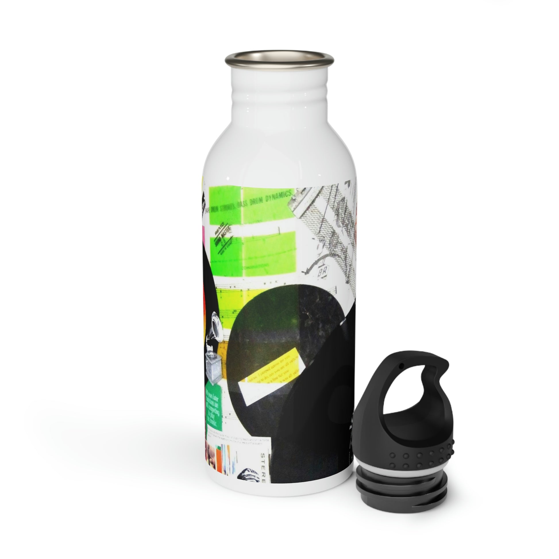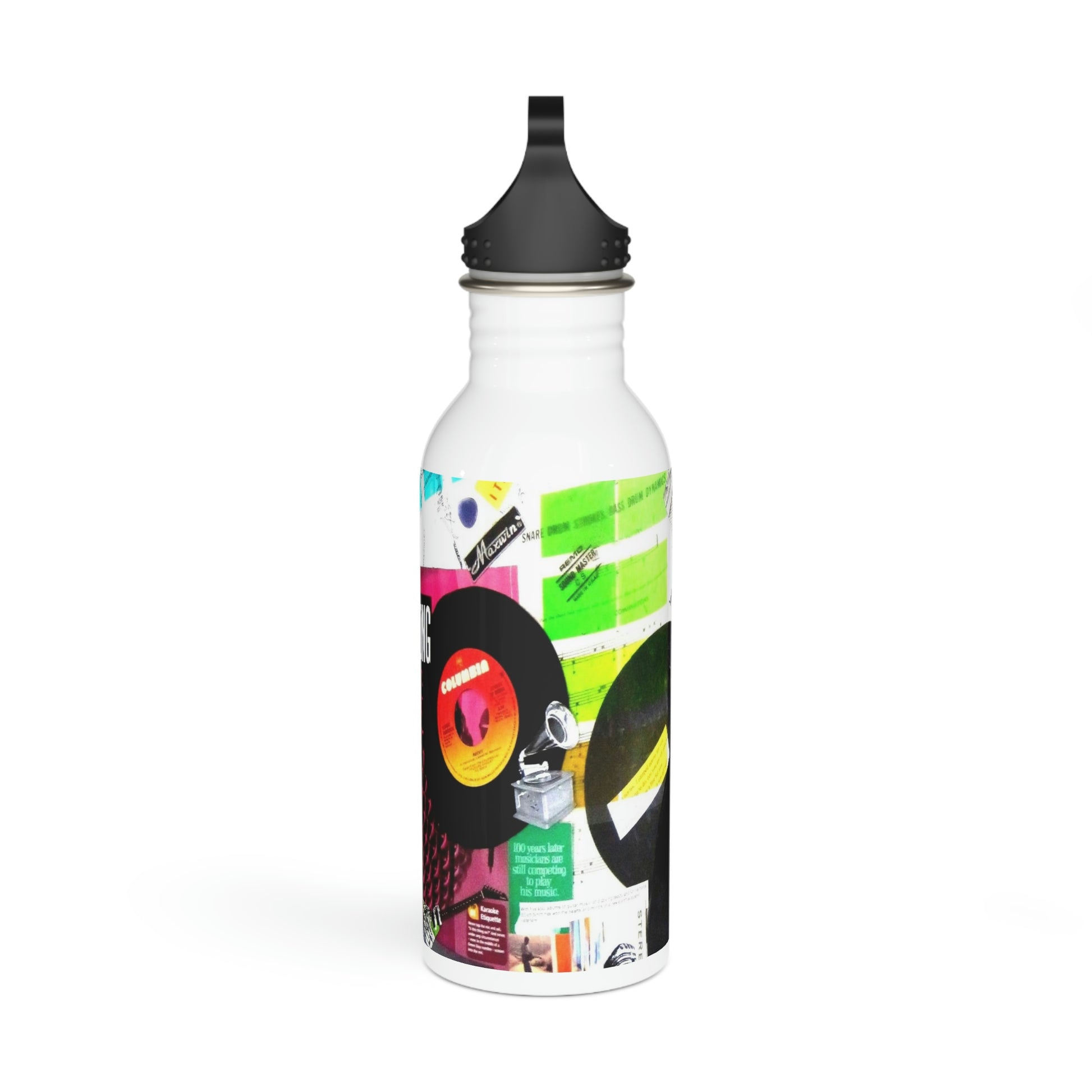 This water bottle features an image of an art piece collage created by Sharon Dawn entitled My Music Diary.