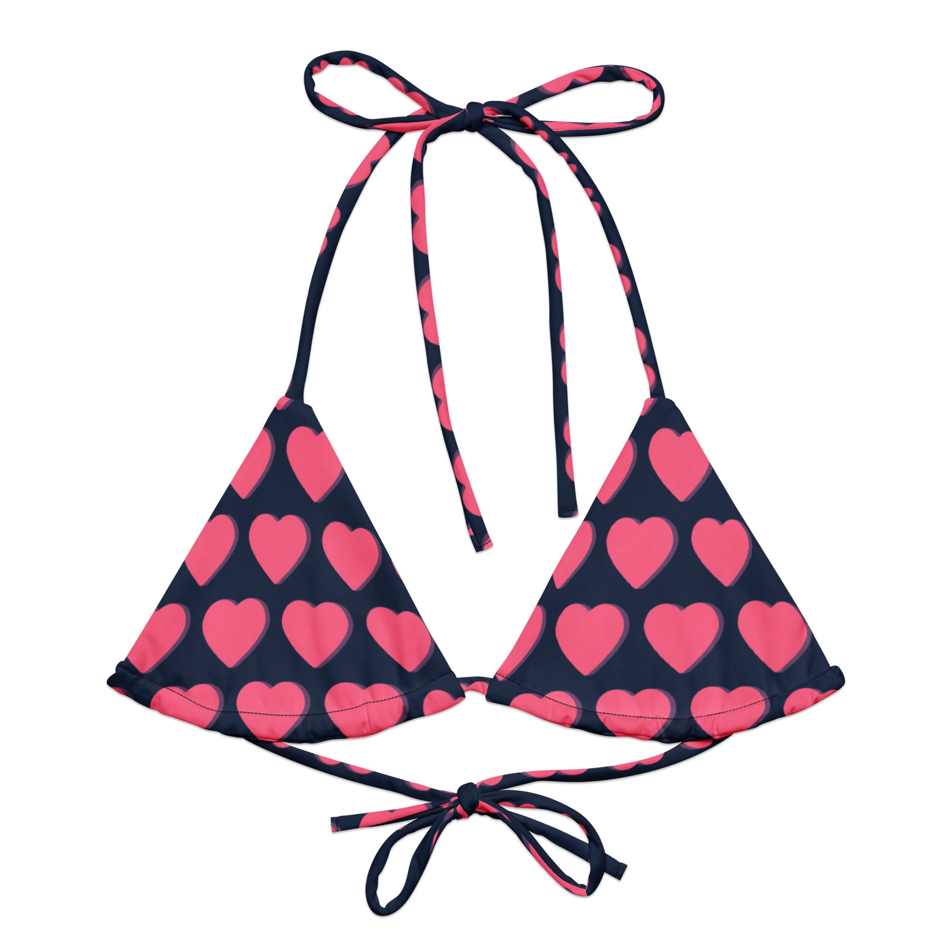 Pink Heart - All-over print recycled string bikini top - multiple ways to tie (UPF 50+) (Sizes up to 6XL) ~ Sharon Dawn Collection (Sale Price: $34.00 CAD)