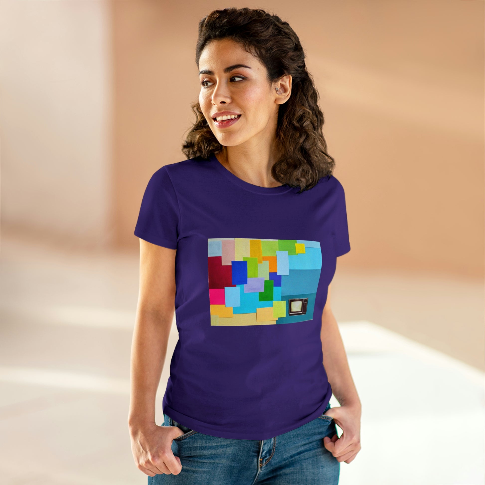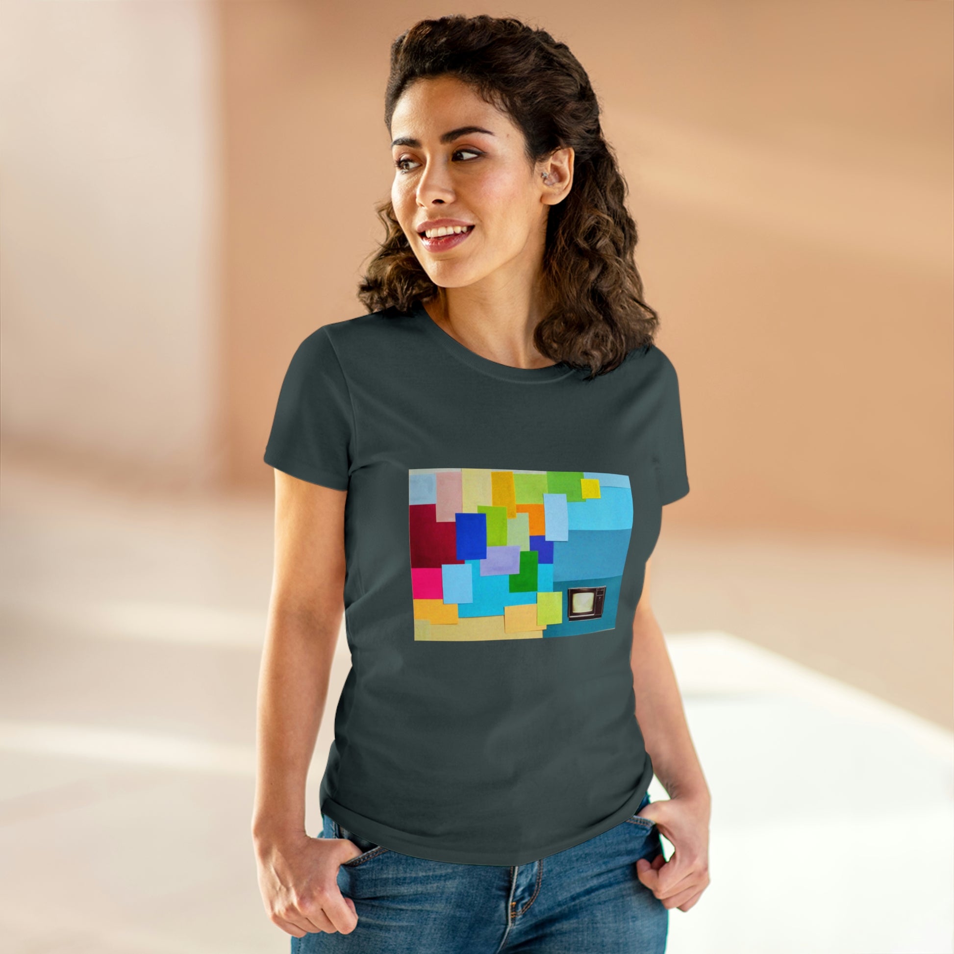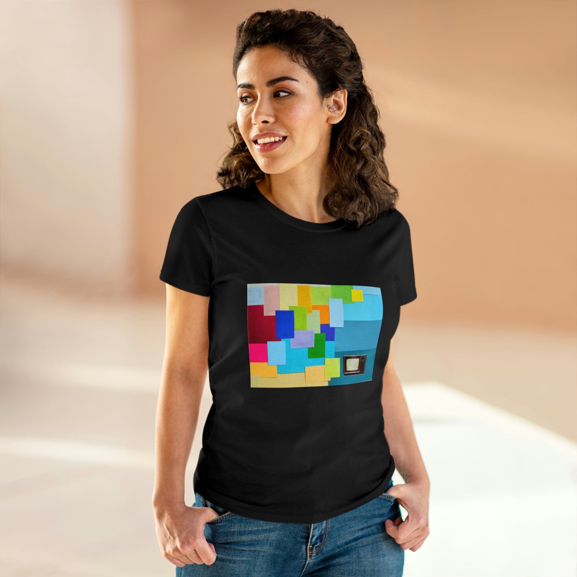 Technicolour TV - Women's Midweight Cotton Tee ~ Sharon Dawn Collection