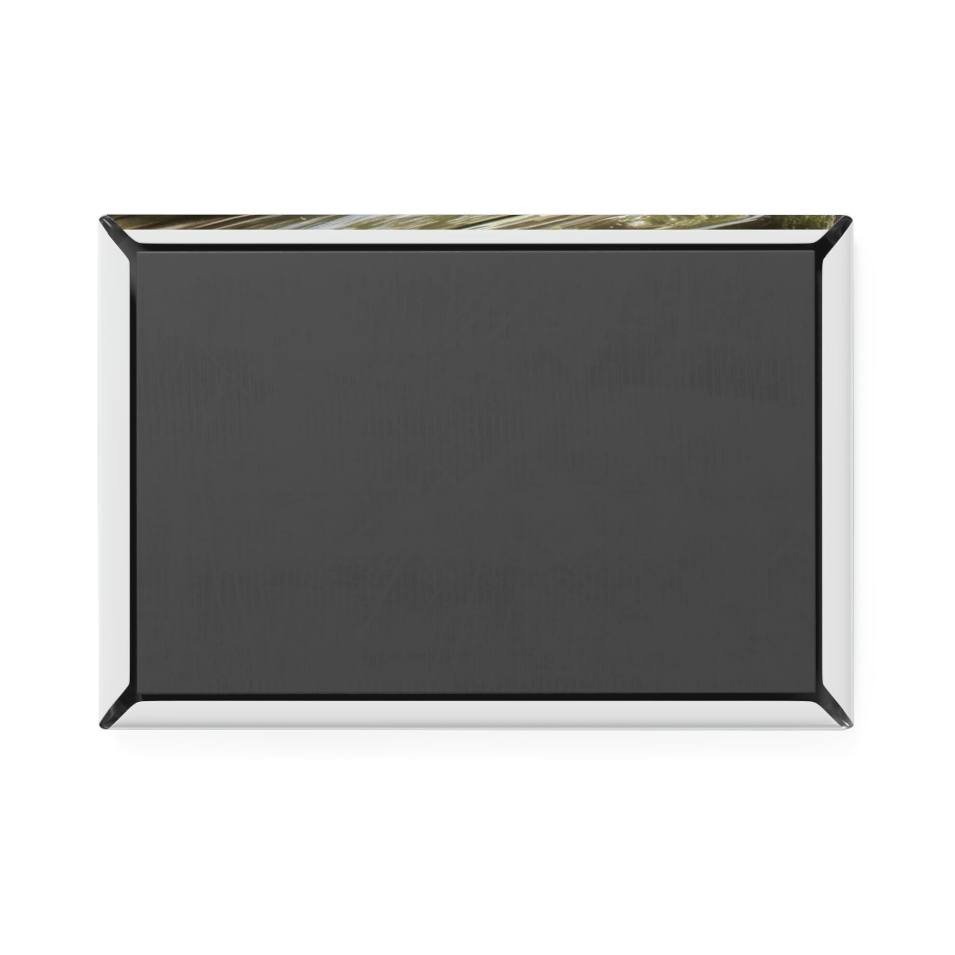 This rectangle magnet features a metal shell front with a magnetic backing. On the front, you'll find a clear mylar/UV cover that protects against fading and scratches. Size (2" x 3") (5.1 x 7.6cm)